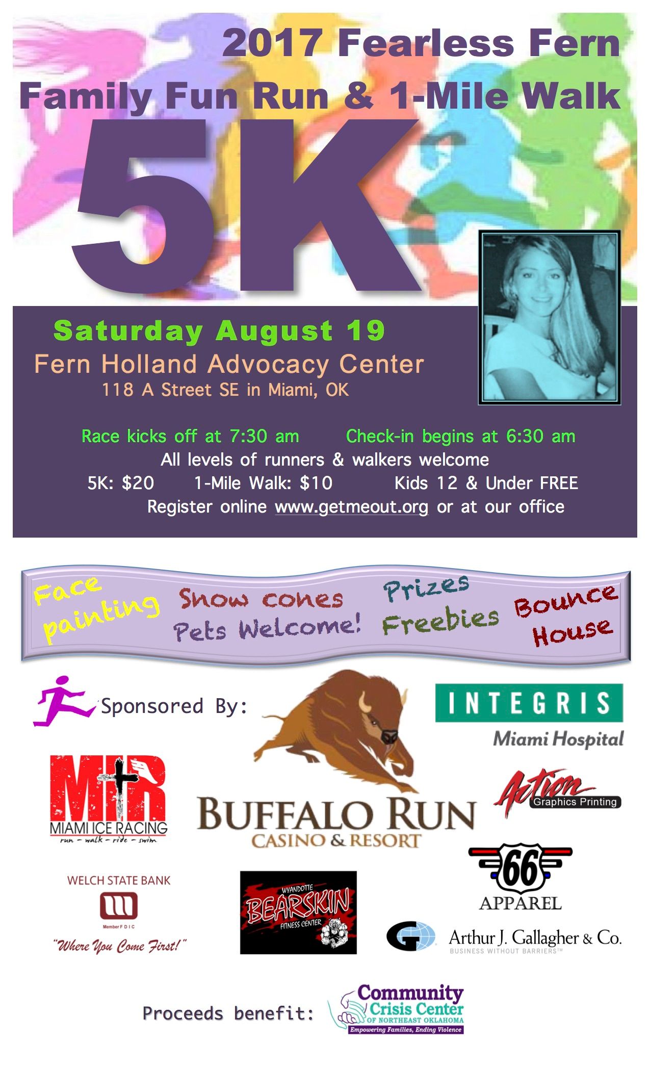 2017 Fearless Fern Family Fun Run and 1-Mile Walk. This year's race hosts family friendly activities, face painting, snow cones, prizes and freebies. This is a medal 5K race.